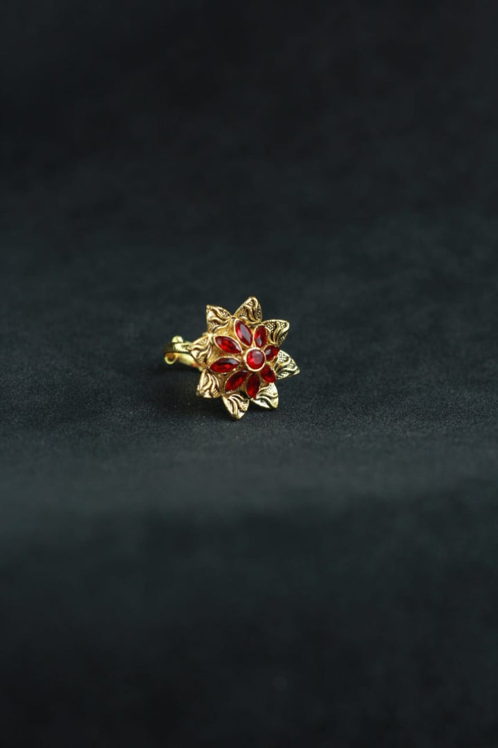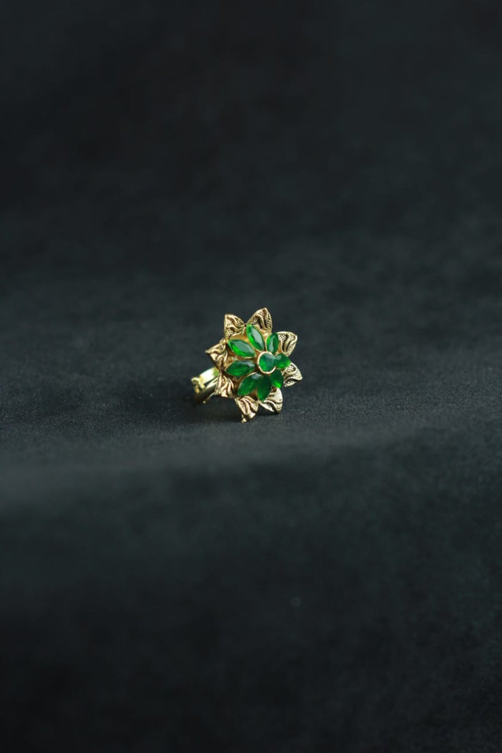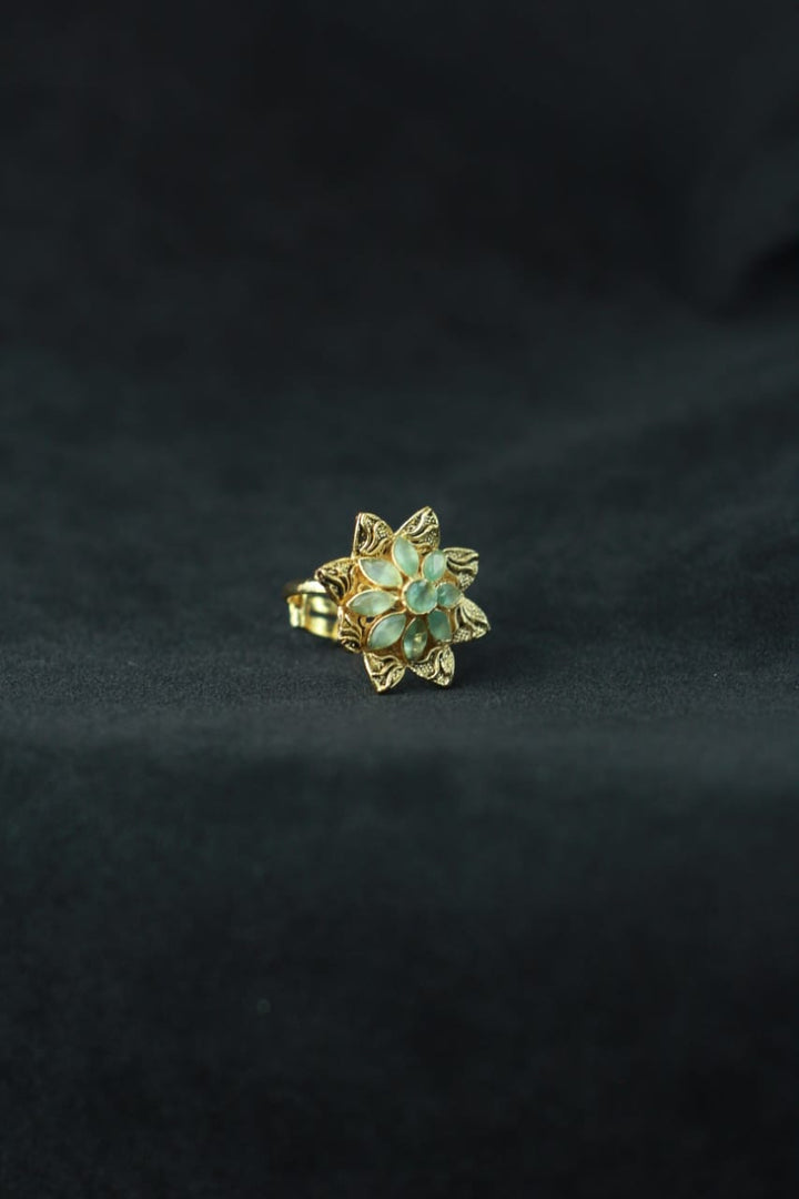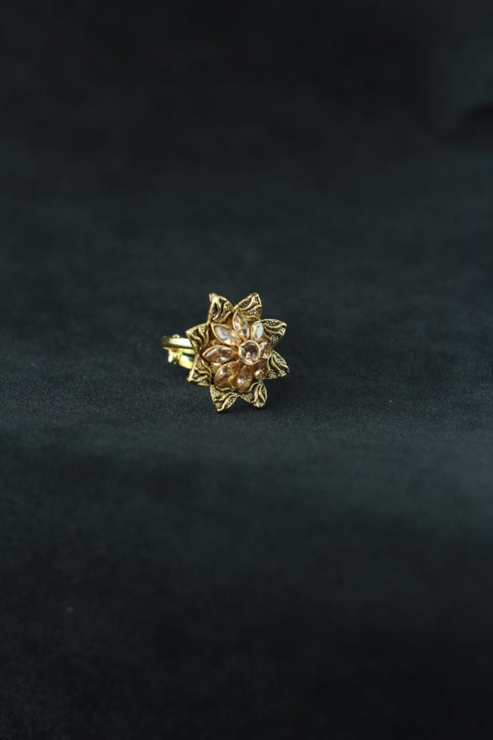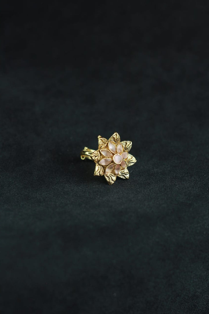 Elevate your accessories collection with the Floral Kundan ring, an exquisite piece featuring delicate mini stones and an assortment of pearls. The intricate floral design showcases traditional craftsmanship while providing a sophisticated accent to both casual and formal attire. Each carefully placed element creates a harmonious balance of elegance and timeless appeal.