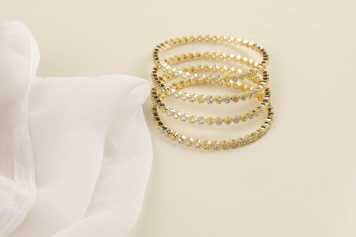 Delicate gold bangles lined with shimmering pearls, crafted to bring timeless sparkle to your everyday style and special moments.