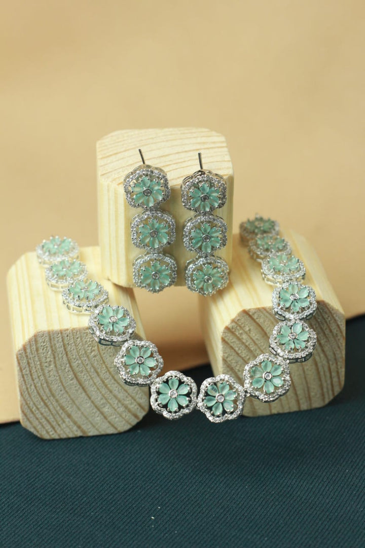 Featuring mint-colored floral gems surrounded by dazzling halos, the Mint Blossom Set embodies the beauty of elegance in full bloom. It's the perfect choice for those who appreciate understated luxury.